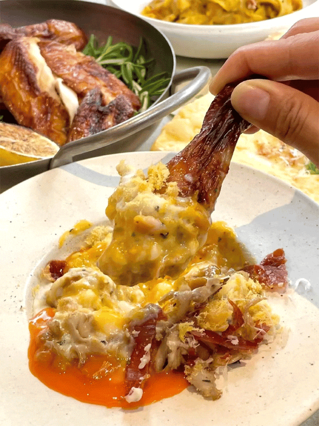 个人最喜欢的是温泉蛋土豆泥搭配着烤鸡一起吃!