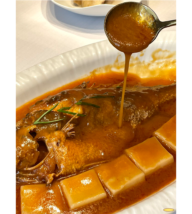 黄鱼肉质细腻,咸甜交织,入味十足。