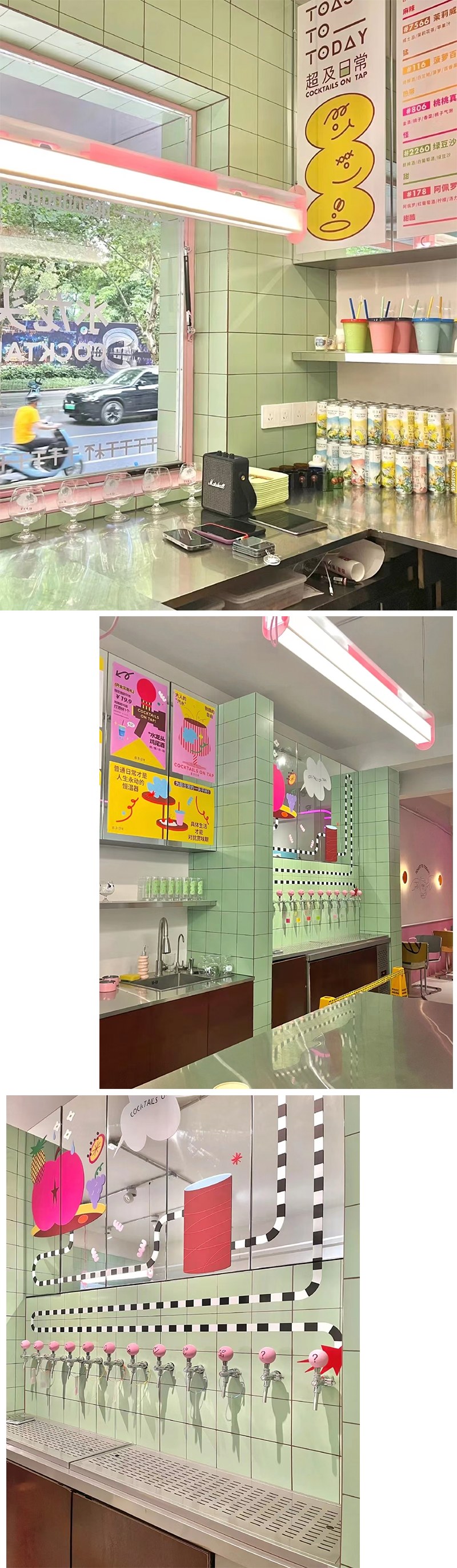 店铺位于全新的世豪荟二楼,Craft Society精酿酒社的店内设计尽显独特风格。门前独具色彩感的视觉设计和橱窗里整齐放置的精酿啤酒瓶,展现出活力四射的魅力。色彩感的潮流风格也被延续至室内,弧形吧台区域Craft Society的招牌尤为夺目。节奏感十足的背景音乐更是让人瞬间进入了City POP的氛围。墙面上色彩丰富的插画艺术作品,由成都青年插画艺术家小野倾心创作,将成都的城市DNA与精酿啤酒的潮流个性完美融合。
