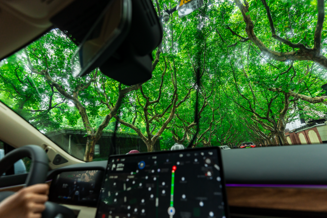 这一次,我们避开了人挤人的网红小马路,坐上自带超Chill气质的“智驾伙伴”,从被誉为“上海第一条花园马路”的新华路出发。