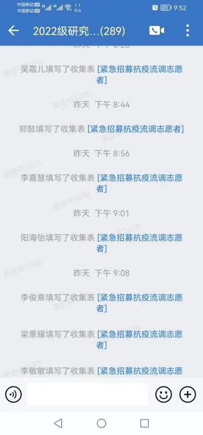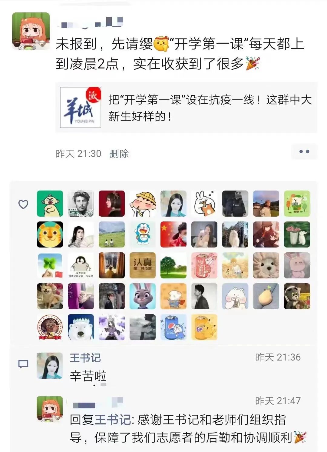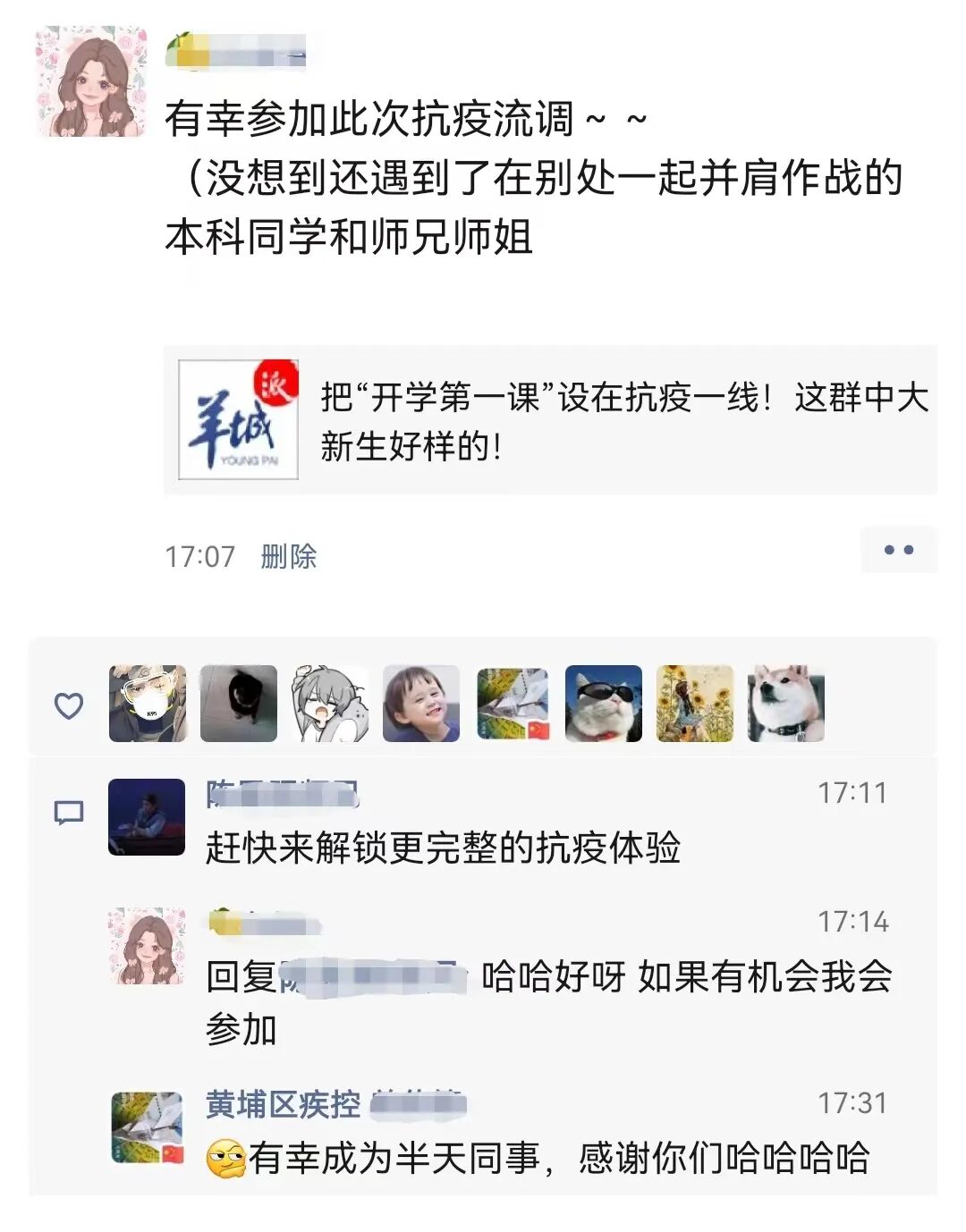 “同学们,有谁可以报名?”学院一发布招募通知,还未到校报到的研究生新生就通过年级企业微信群主动请缨,第二天开学便加入广州抗疫流调工作的志愿者服务队伍。