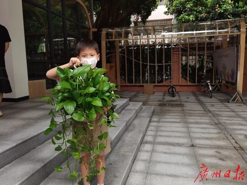 华阳小学二年级的一个小男孩带了一大盆绿植回到班里。绿植生机勃勃,寓意新学年,新希望,新愿景。