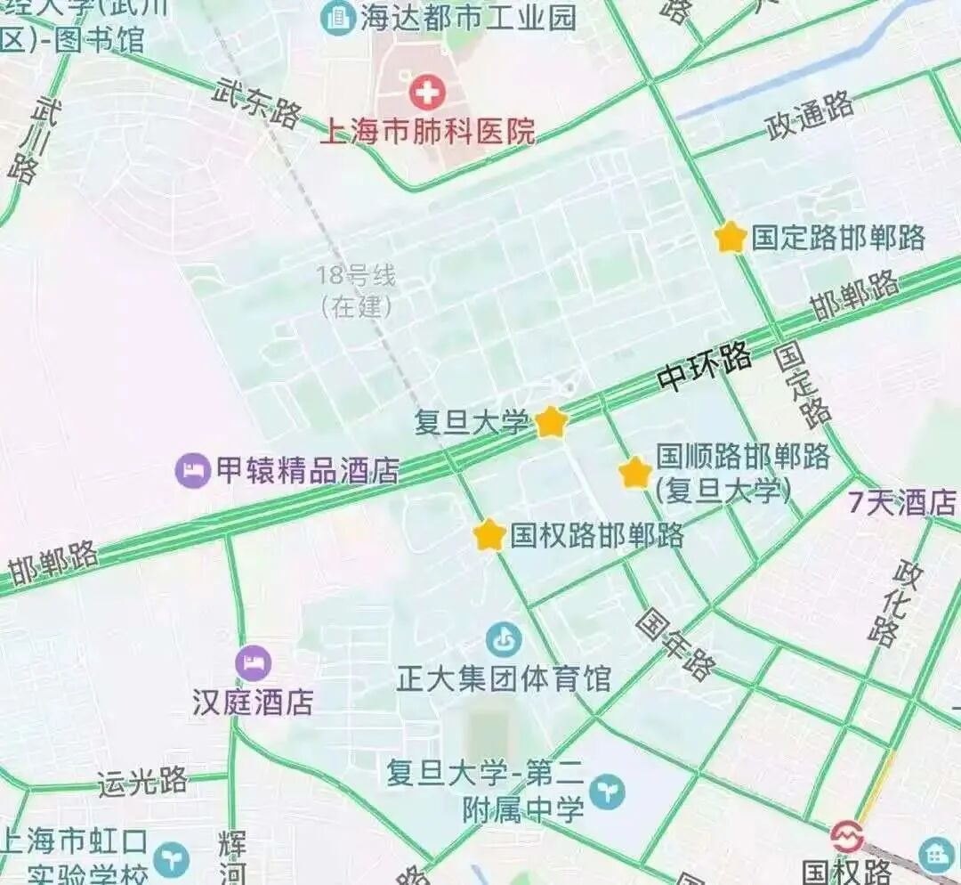 邯郸校区附近共有3个地铁站,距邯郸校区正门均15分钟路程左右,同学们可根据目的地自行选择。