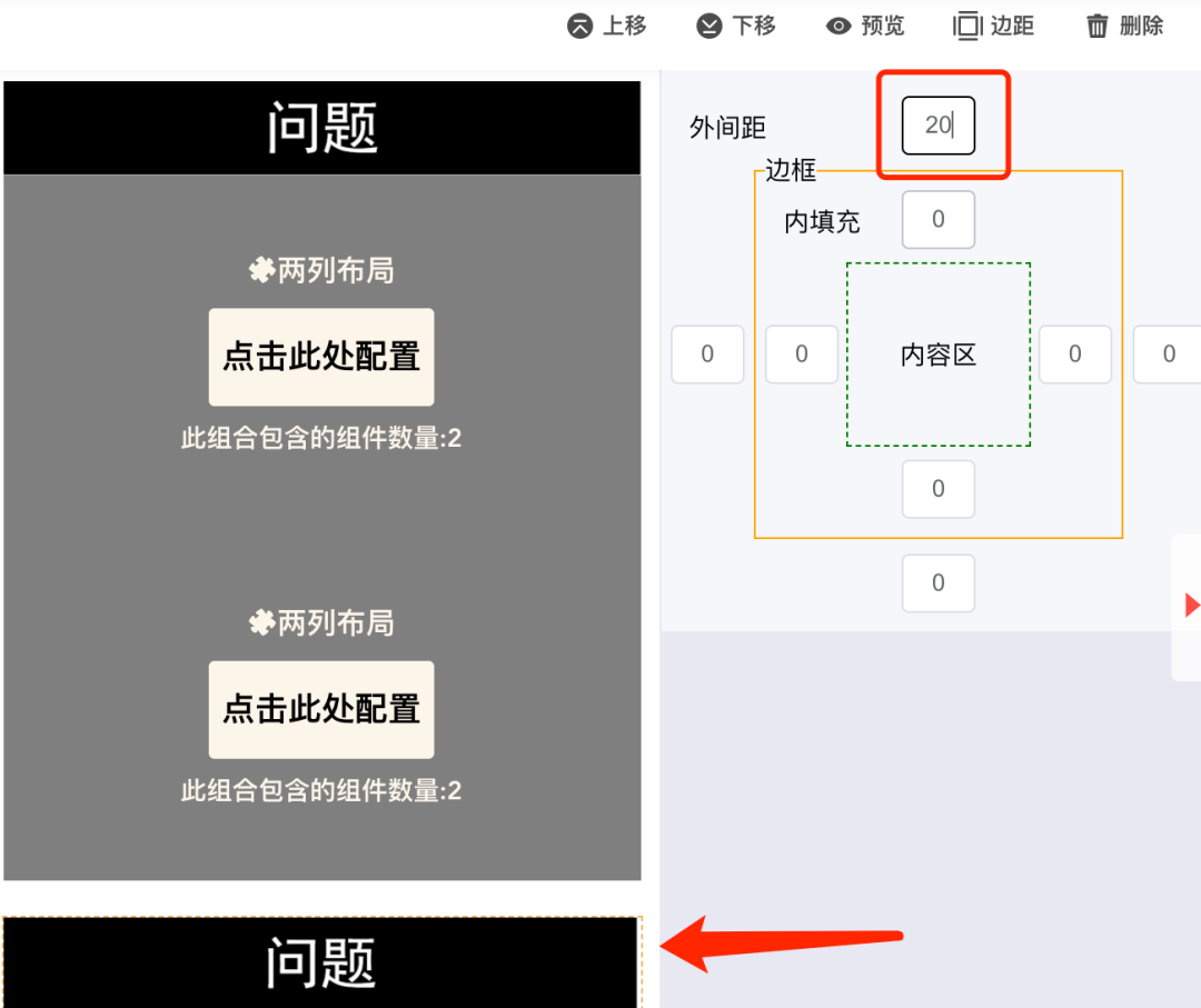 如果我们想让两个模板之间间隔一定的距离的话,如下所示,通过「边距」功能中的外间距即可调节。