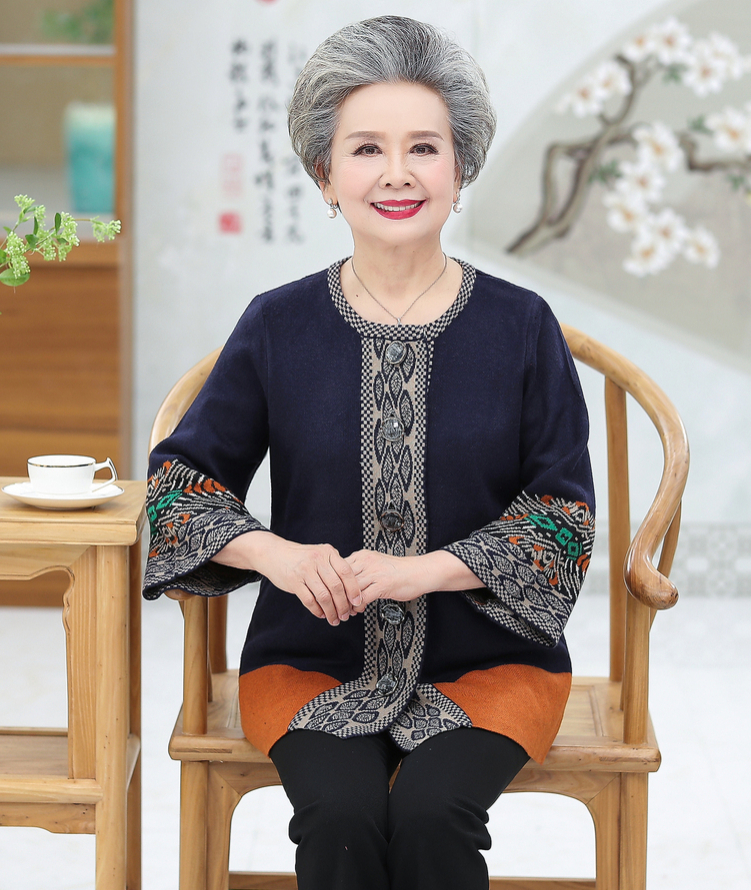 为奶奶设计的一款上衣,优雅的衣领,修饰脸型;减龄套头针织衫,展现知性魅力;衣摆直筒垂顺,遮掩多余赘肉,收敛腰身轮廓。孝敬长辈,送奶奶的贴心好礼~