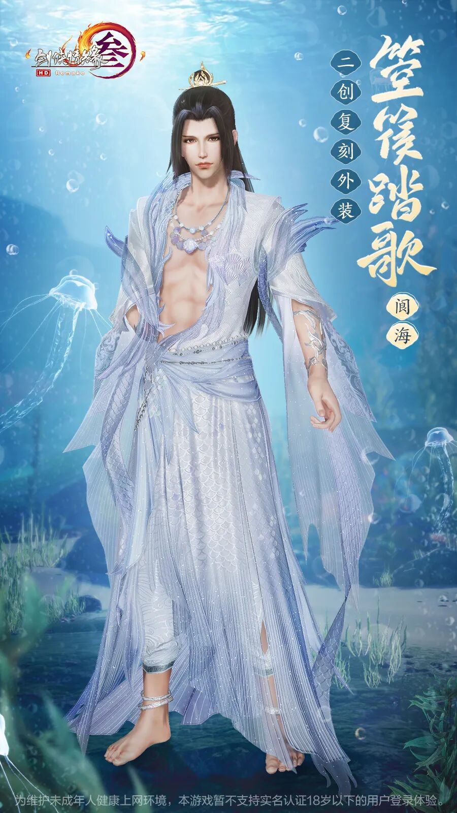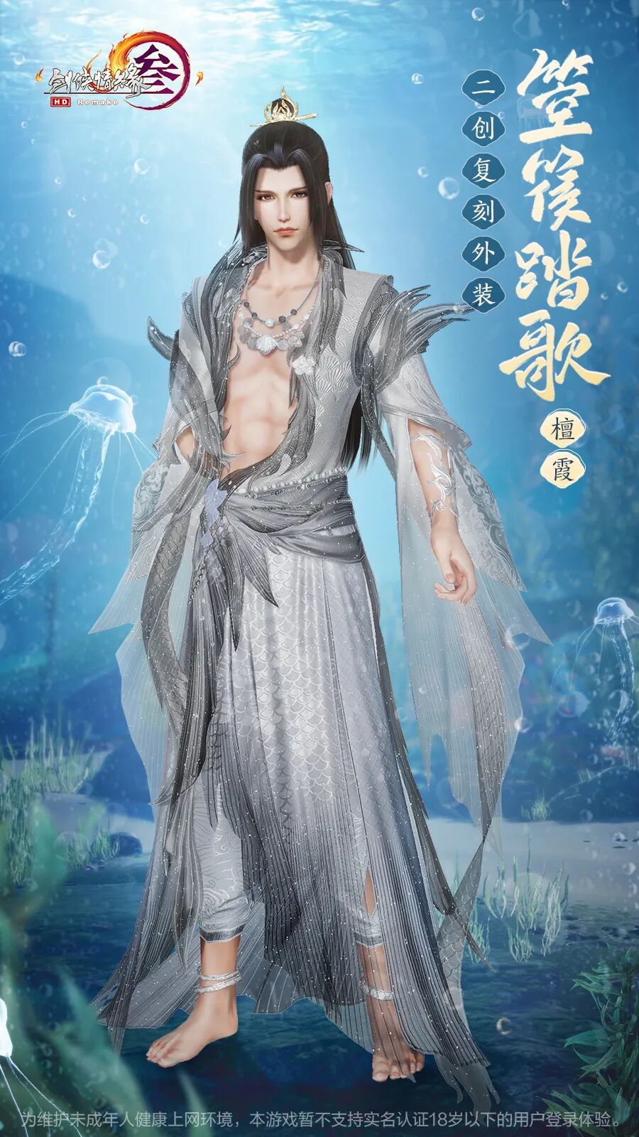 成男款衣襟设计如浪绕身,暗纹似鳍,身姿灵动,更添神秘不羁之感!