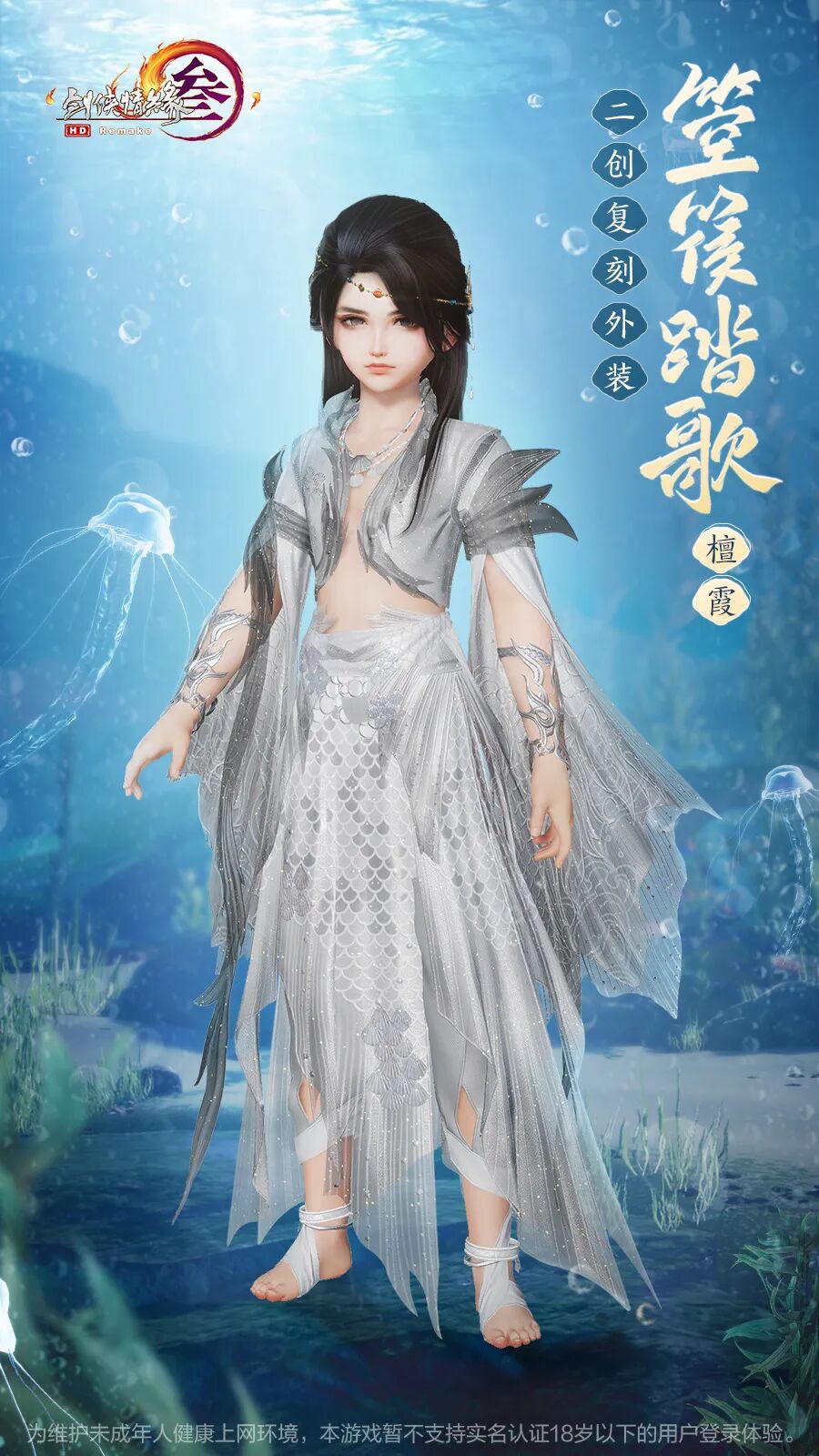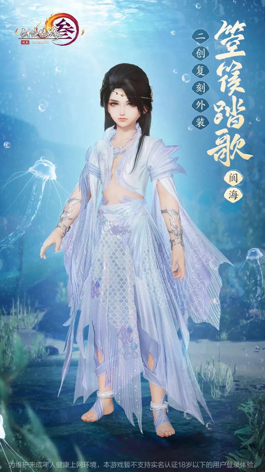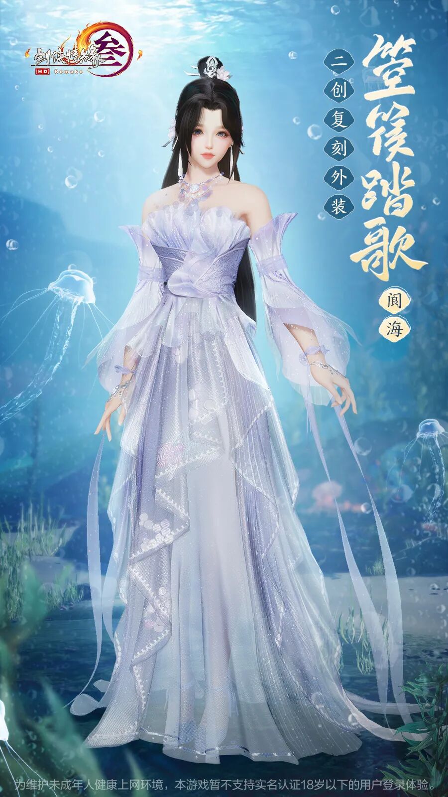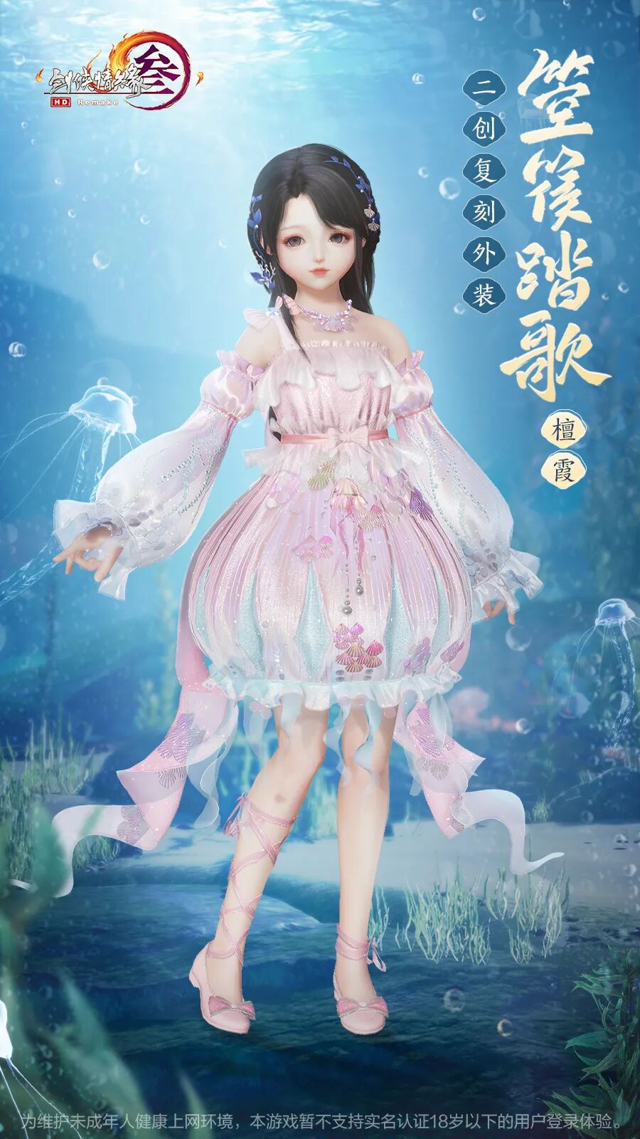 成女款颈间以贝壳珍珠装饰,衣摆有晶莹气泡蜿蜒而上,遥相呼应婀娜多姿,顾盼神飞见之忘俗。