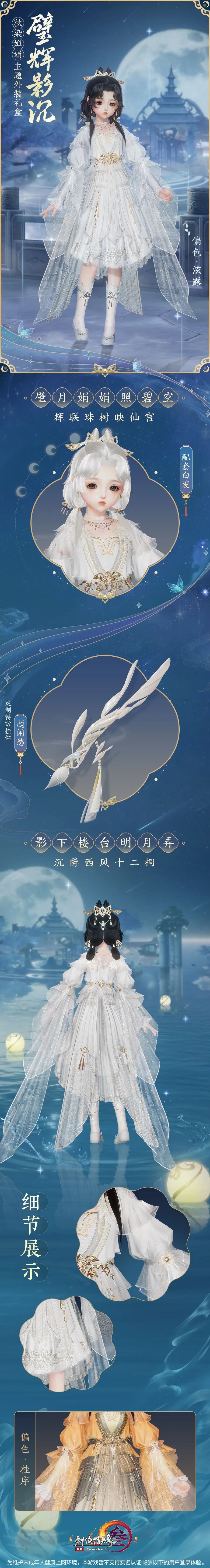 秋染婵娟主题外装礼盒“璧辉影沉”将于9月8日上架商城,详情如下: