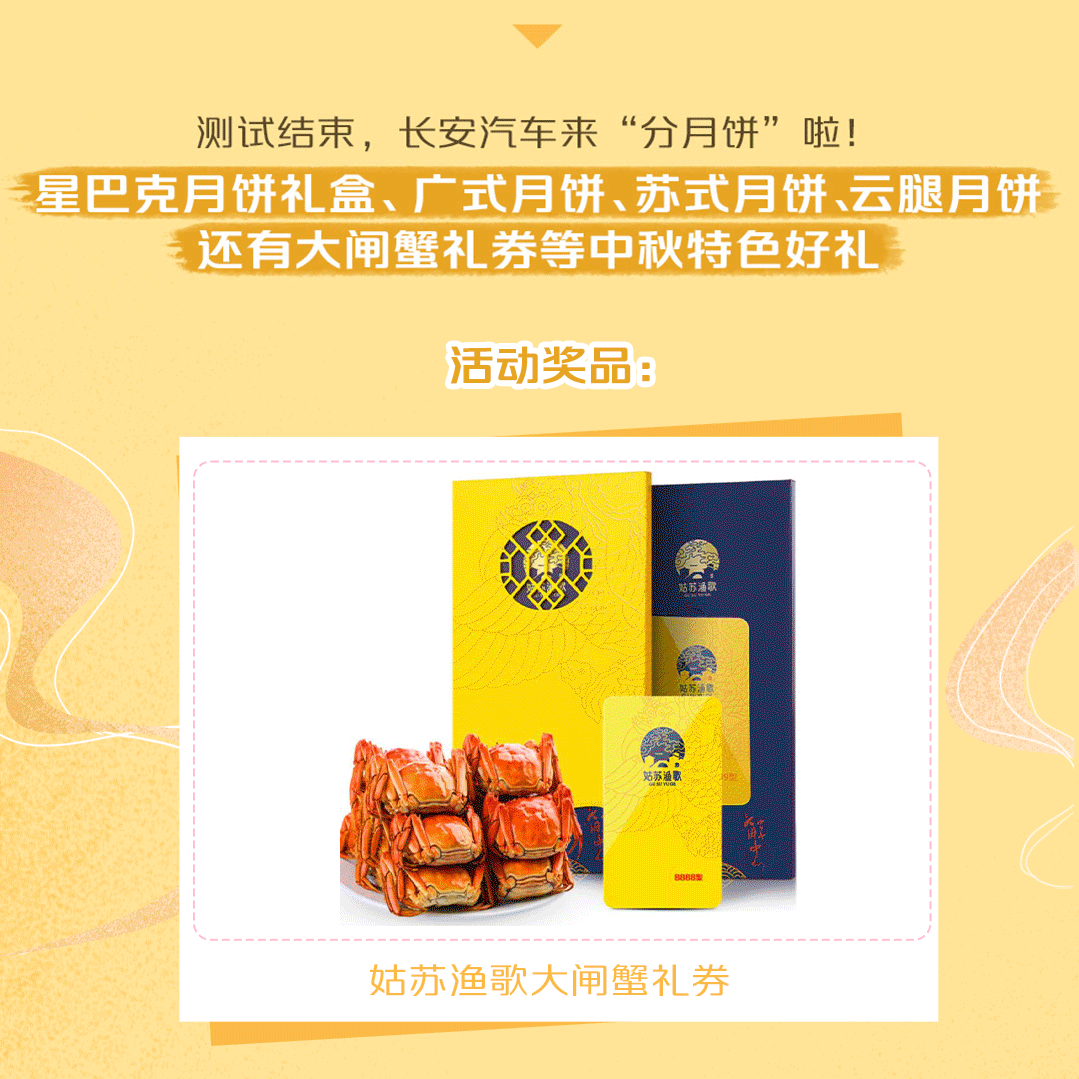 中秋好礼到,大闸蟹月饼免费领!长安汽车祝您阖家团圆~