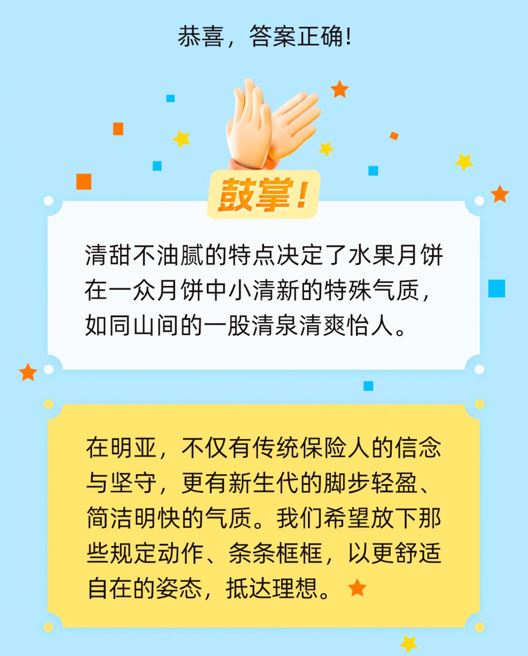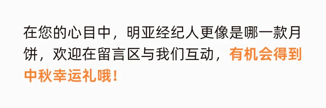 后来迷迷糊糊就长大了,工作越来越忙,收入越来越高,月饼的包装越来越精美,花样也越来越多了,我们还是会在节日里吃上几口,偏偏小时候吃月饼的那份儿心境没有了。油润的饼皮裹着各色的馅料,那曾经是小时候掰着指头期盼的美味。以前的月饼馅儿,是在那个物资相对匮乏的年代,人们把平日里难得吃上的好东西,一股脑儿都往饼皮儿里塞,要的就是让你吃到甜、吃到腻,吃出富足的感觉。长大后,我们把故乡藏在身后,单枪匹马去闯荡生活。即便早已富足无忧,却忘了只有映着团圆的景儿,赏着中秋的月,人们才能吃出月饼的甜,才能吃出团聚的千般滋味。如果说,我们花了18年的时间才学会离家独立,那么就是在用一辈子的时间学习如何回家。我们每个人都在一次次离家、回家的往复中,学会了长大。我们也在一次月圆与下一次月圆当中,逐渐理解故乡与家的深意。离开故土家人,一切的奋斗也是为了更好地团圆。而故乡和家人,最终会成为支持你一生的力量。这个中秋,有人回家团圆,有人坚守岗位,有人学习充电……今天,我们送上这款月饼,以明亚人的祝福为馅儿,以真诚为衣,趁空中明月尚圆,让我们对着此轮清晖许下心愿,不论这个中秋你身在何方,唯愿彼此康健,期待下一次的团圆。1.关注+留言,在你的心目中明亚人是哪一款月饼?我们将精选赞数较多的有趣留言,送出精美的礼品。2.留言入选要求:原创留言、内容风趣、表述准确,有故事性的留言将优先入选。活动最终解释权归明亚所有。3.留言及点赞截止时间:9月15日17:00,我们将于3个工作日内联系各位幸运儿,奖品将于15个工作日内统一进行寄送。2022 The Mid-Autumn festival