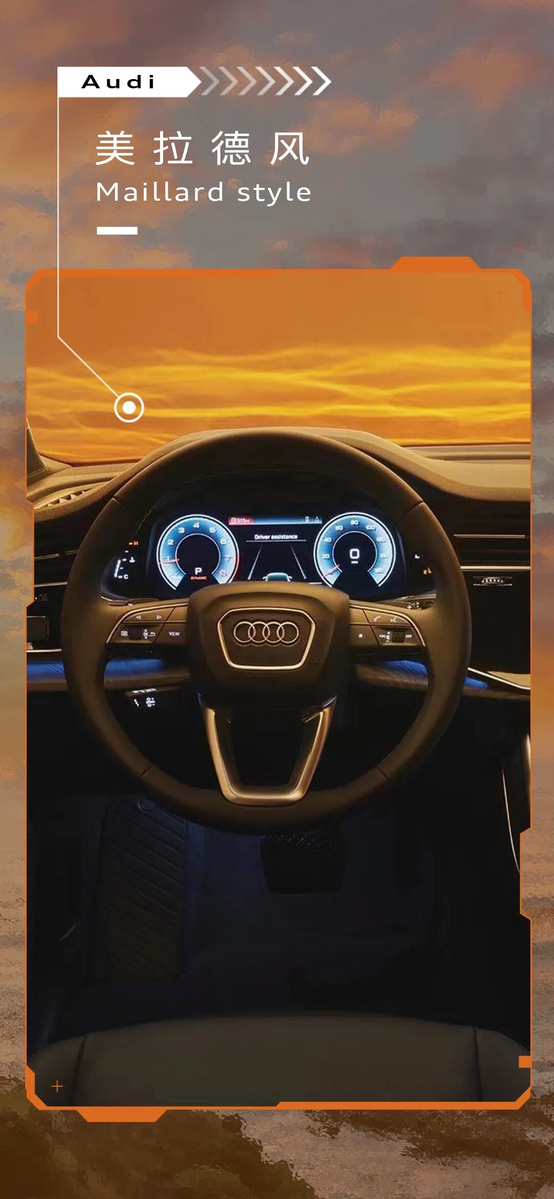 推荐:奥迪通过「自动轮播」和「点击弹出」的交互相结合的方式,向大家展示美拉德风格的汽车壁纸,借此宣传品牌。