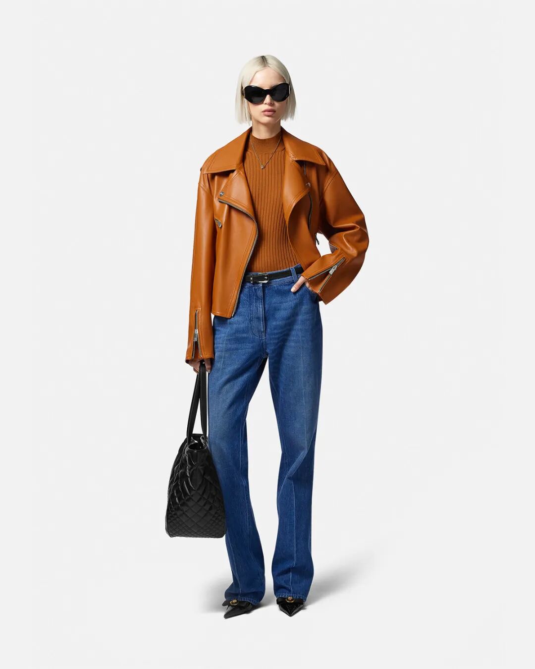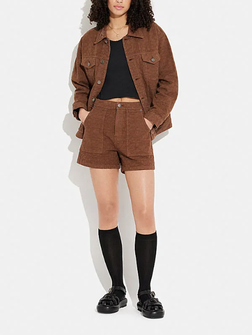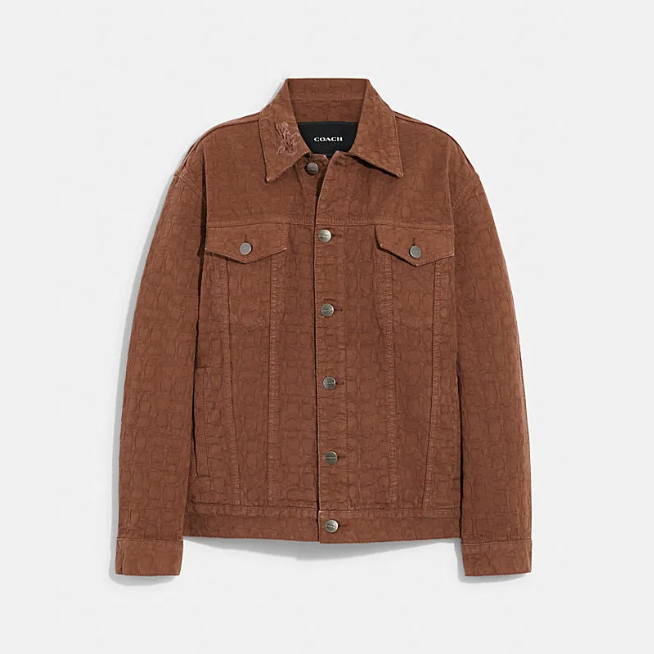 经典标志提花丹宁夹克以其棕色经典标志设计