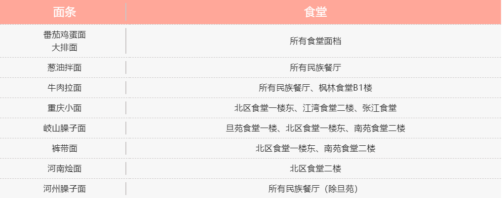 食堂所有面档番茄鸡蛋面、大排面3元一份