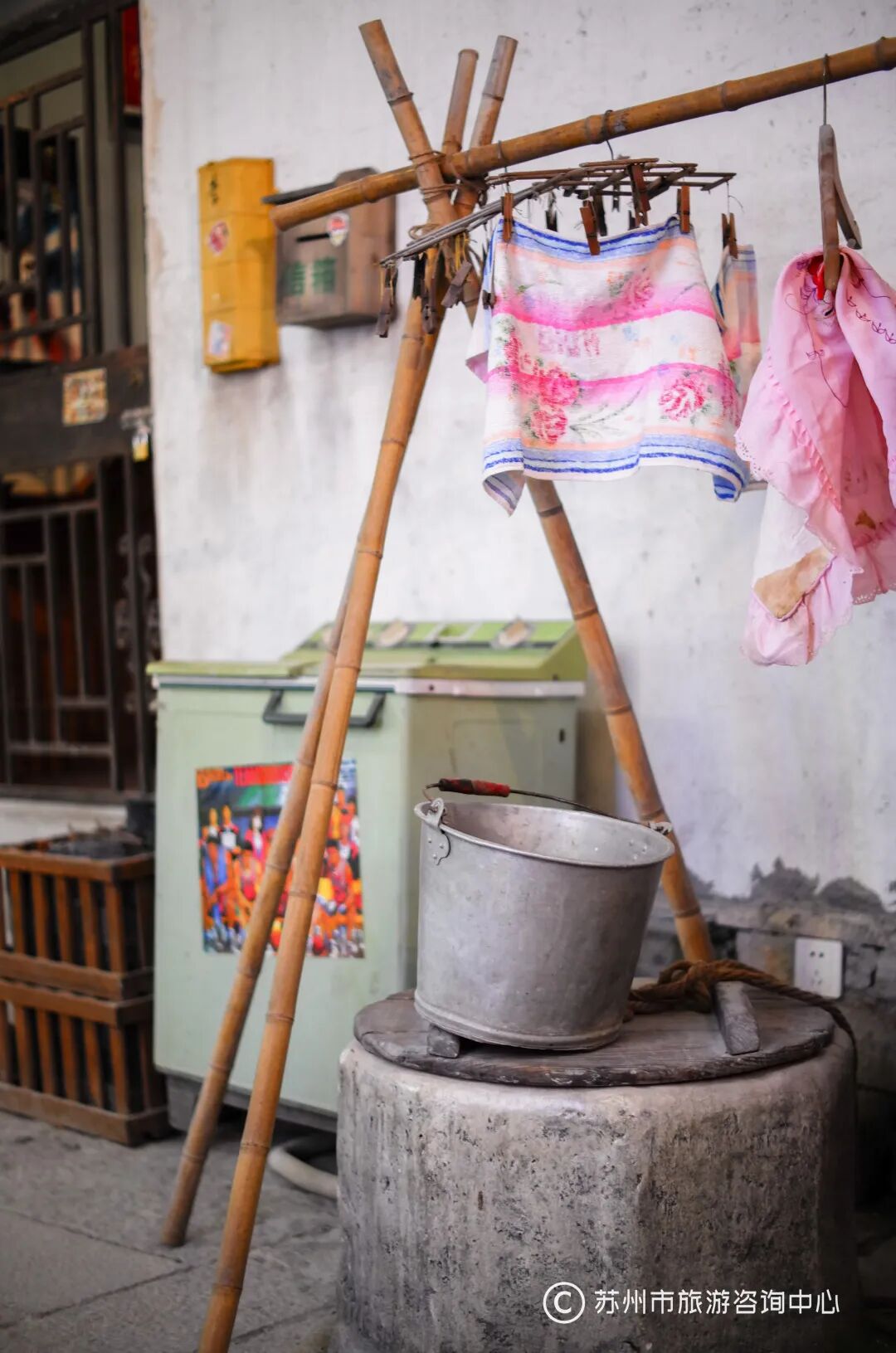 斑驳的的墙面、木质的门窗、弄堂里的晾衣杆、小广告和宣传画……走街串巷,细节处都可窥见老苏州的生活烙印。