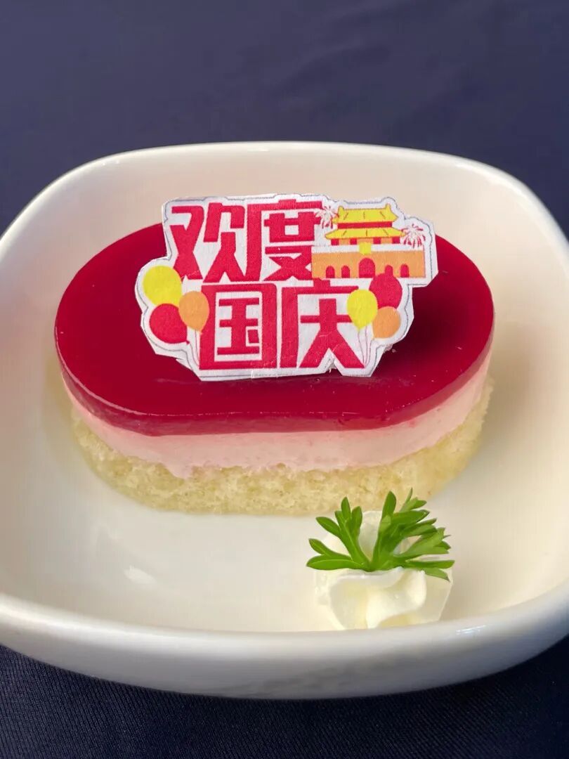 在2022年国庆假期到来之际,“AIRCHINA爱CHINA”节日专属甜品从即日起陆续在国航北京首都、上海(虹桥和浦东)、杭州、重庆、天津、武汉出港航班的两舱所有配餐时段、经济舱正餐时段配备,同时在厦门、兰州等33地出港的部分航班也上线了国庆专属甜品。