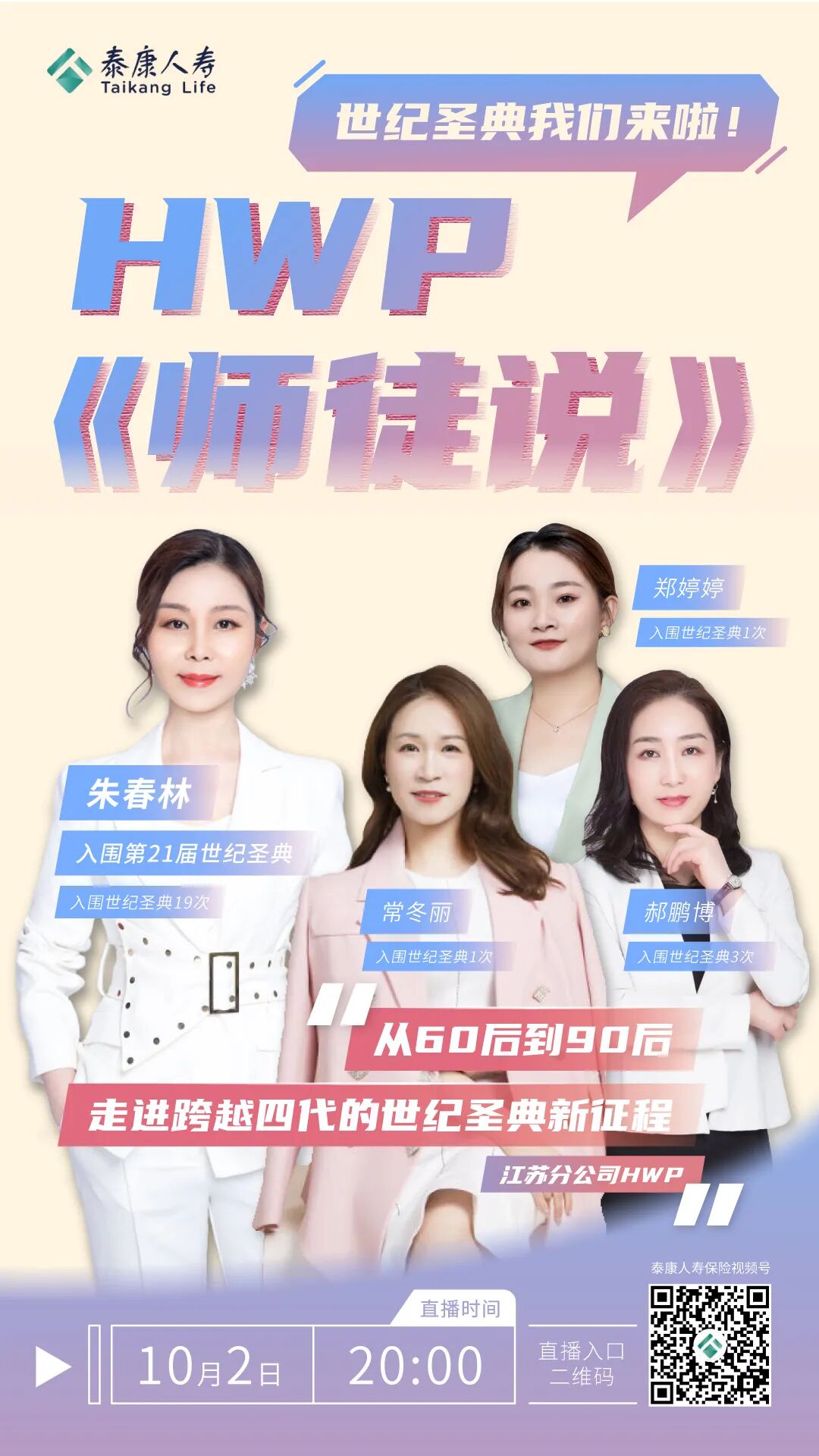 泰康即将举办第21届世纪圣典。一年一度的世纪圣典是泰康销售精英的最高荣誉殿堂,也是中国保险业持续时间最长的销售精英表彰盛会之一。泰康打造的新职业—HWP持续发力,在行业转型的当下,HWP成为世纪圣典的主角,体现了泰康大健康平台的力量。