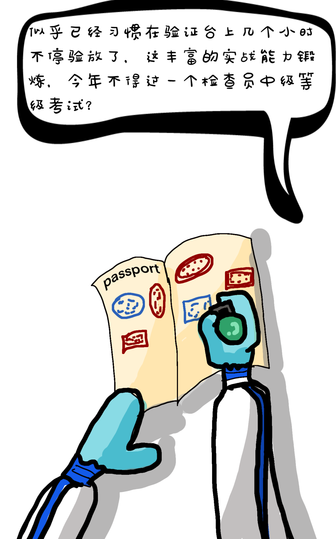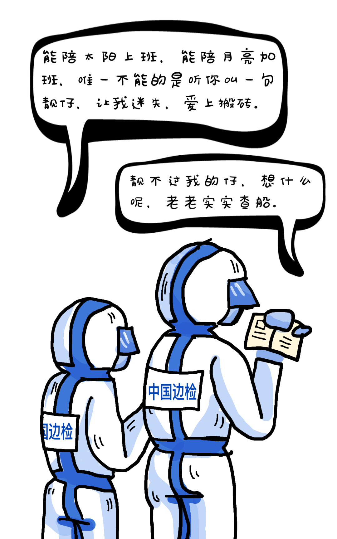 “咔嚓!”验证台上,伴随着验讫章无数次的起落,检查员防护服下的手,早已被汗水浸出褶皱,大家早已习惯,守好第一防线,争当国门卫士的使命,牢记在心。