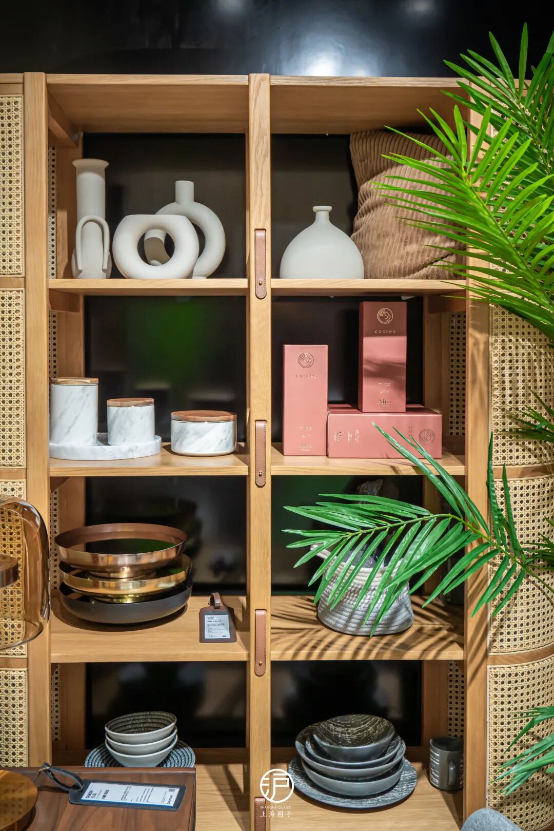 所制成的书架洋溢着热带气息