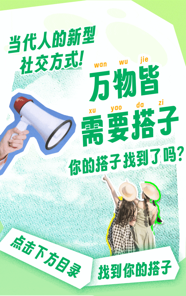 推荐:「点击展开」模拟目录展示吃饭搭子、摸鱼搭子、拍照搭子,借此宣传清风产品,吸引大家参加福利活动。