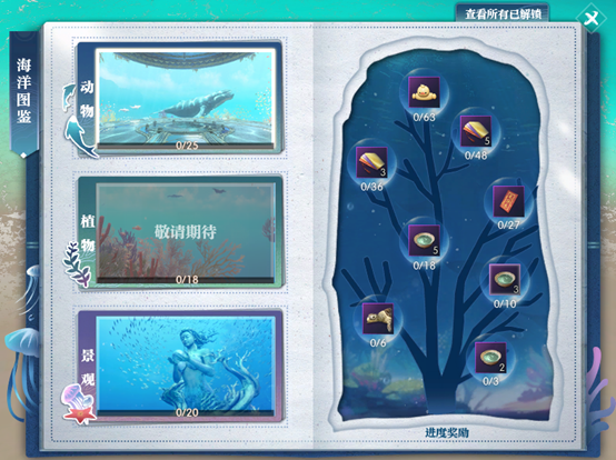 c)本周更新后仅开放动物图鉴和景观图鉴,植物图鉴解锁功能将于后续更新中开放。