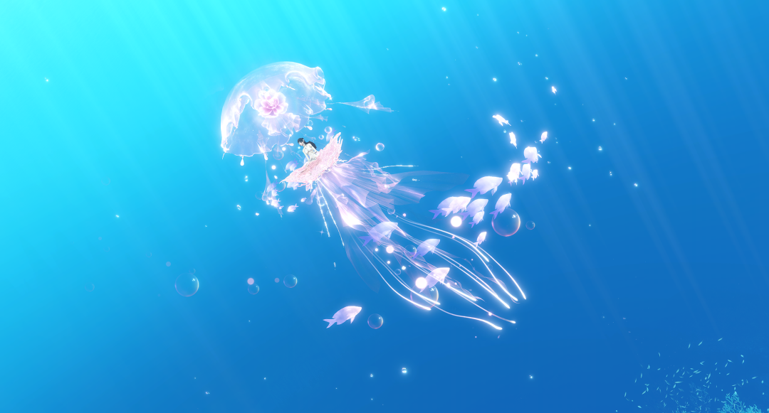 本周更新后各位同门可于【南海】潜水,体验数十万米深的变幻多姿的海底世界。不仅有多种多样的海洋生物、鬼斧天工的地势地貌、还有多种休闲探索玩法等你体验!