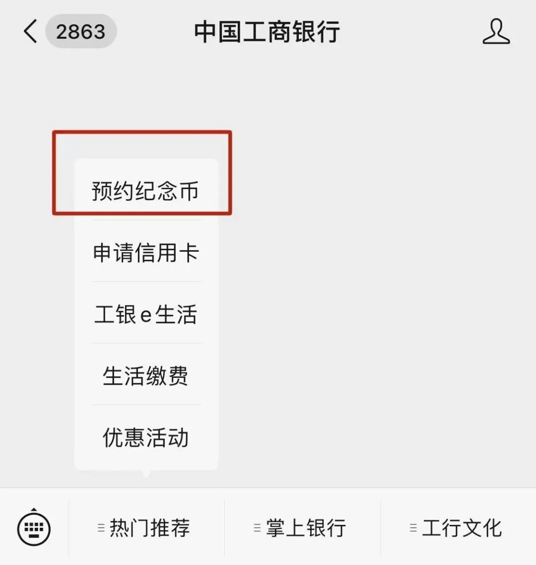 锁定「中国工商银行」微信公众号
