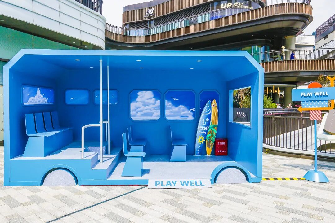 「Let's Fashion Well出色悦动」第一站,是这辆天空蓝色的户外摩登巴士。
