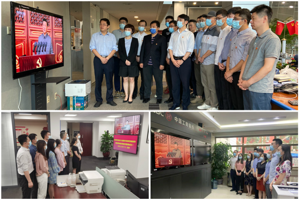 工商银行党委高度重视,组织全行20余万干部员工集中收听收看庆祝中国共产党成立100周年大会。从总行党委到各级领导干部,从全国优秀共产党员到基层年轻党员,从离退休老同志到青年员工,大家都在收看着、关注着,为习近平总书记的重要讲话精神所鼓舞,为百年的辉煌成就而心潮澎湃,纷纷向党诉说工行人最美的心里话。