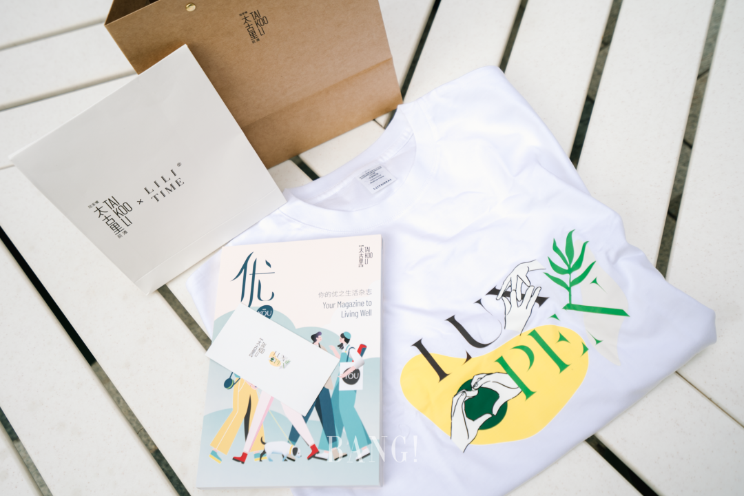 前滩太古里还贴心为到场的VIP们准备了一周年盛典伴手礼,前滩太古里《优YŌU》品牌杂志纪念刊、前滩太古里 X LiLi Time「LUX OPEN」限定公益T恤,让Wellness在细节处闪光!