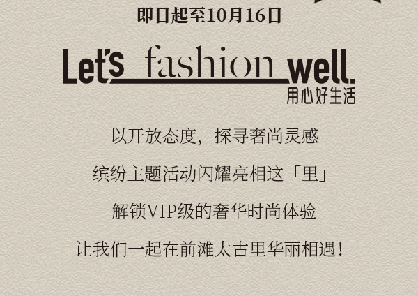 9月26日至10月7日的「尊享优活」体验周,和10月14至16日的「天空秀场」时装周也千万不能错过,一场关于时尚的风暴正在蠢蠢欲动!