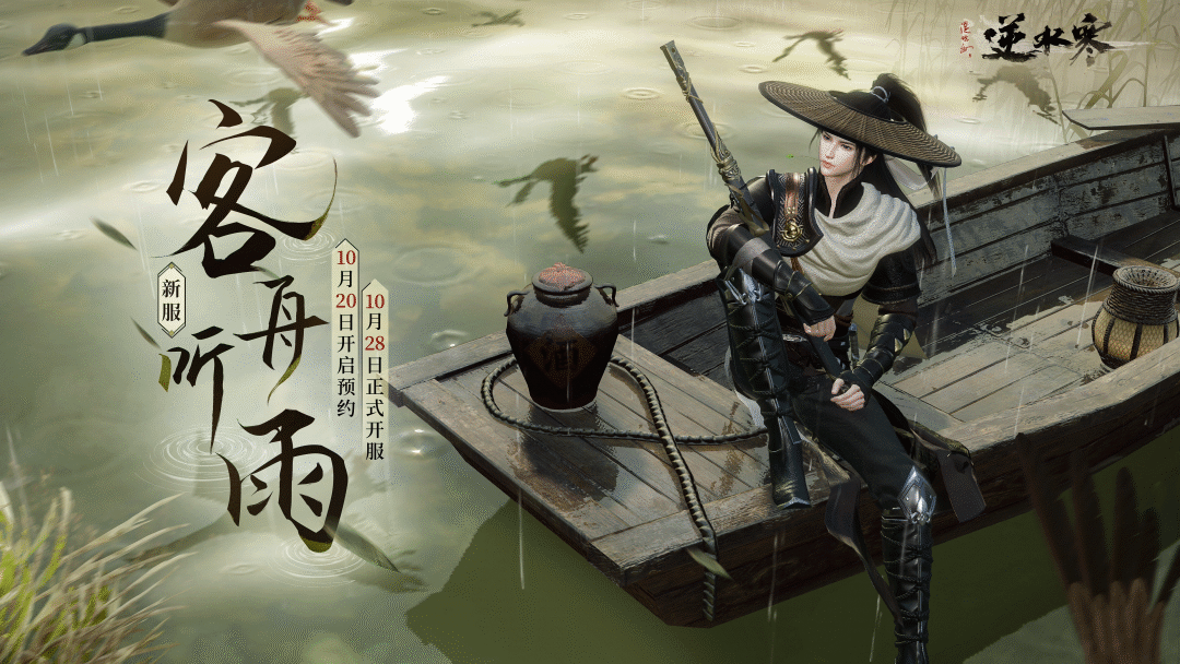 西风催,秋意浓,十月新服【客舟听雨】如约而至!10月20日开启预约,10月28日正式开服!快叫上三五好友,一起快意江湖吧~