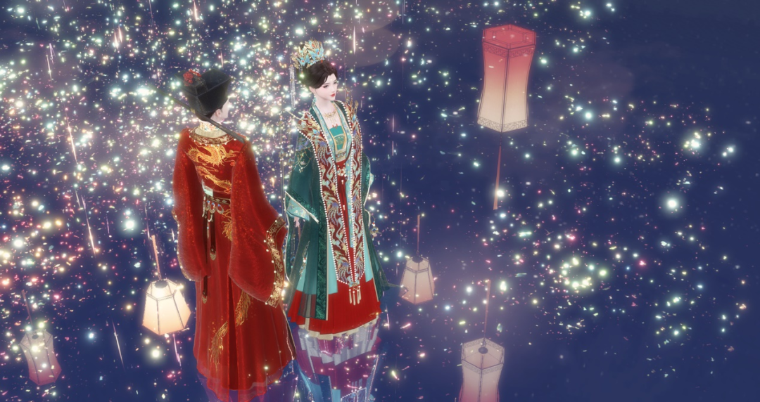 b) 新增道具【便利贴贴纸·双鹊】、【千丝染】、【易容·全免券】、【外貌·全免券】,可使用情缘值兑换,结婚时间满足一定时长更可兑换独有背挂【花寄洛神】、独有情缘称号、独有情缘头衔、【浮光千丝染】等珍稀道具。