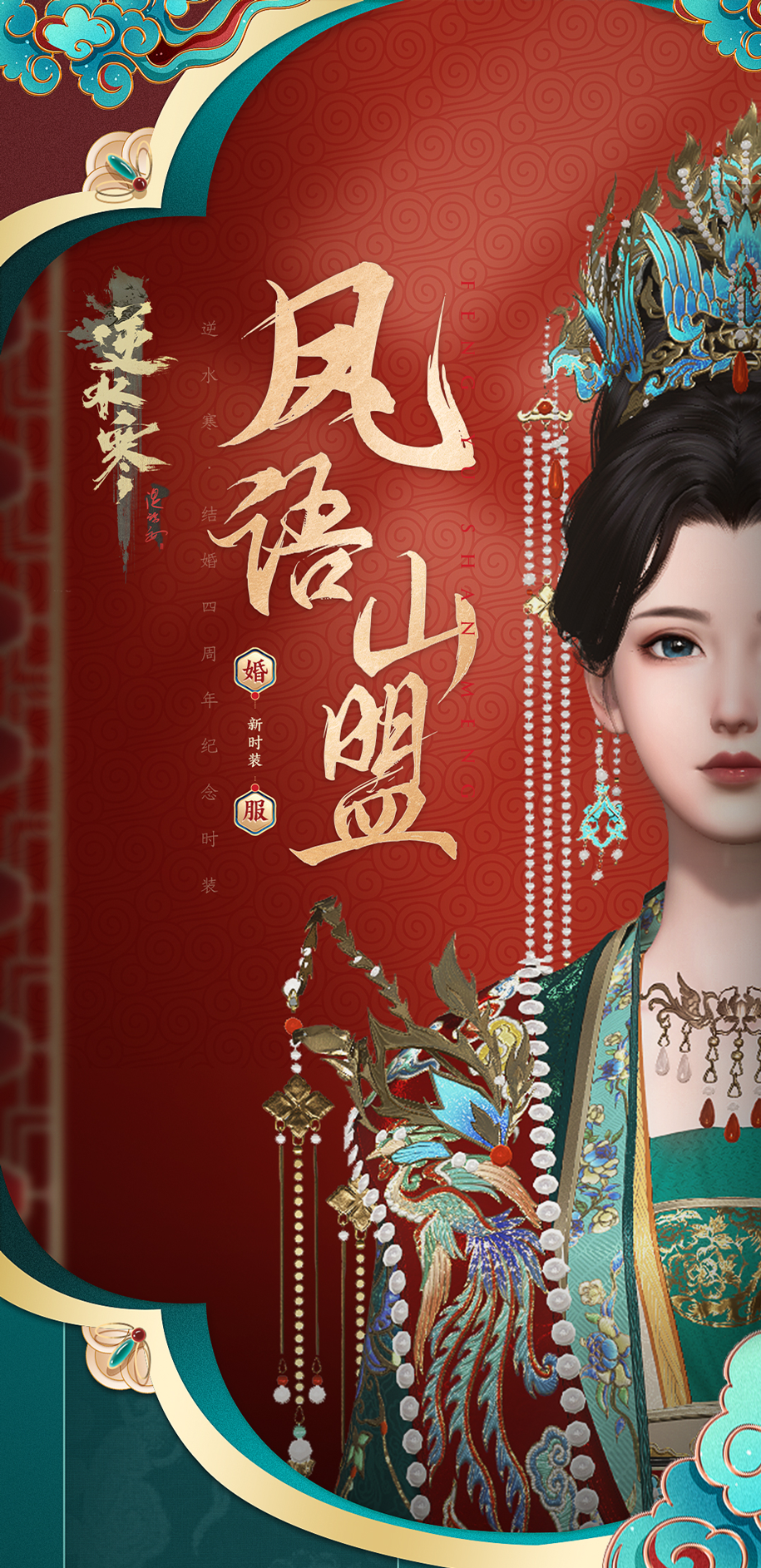 本周四(10月20日)更新后,结婚四周年纪念时装【凤语山盟】(女)/【龙云海誓】(男)上架情缘商店,结婚时间达到4年或拥有50万友好度称号的同门可以用一定数量的情缘值前往兑换。
