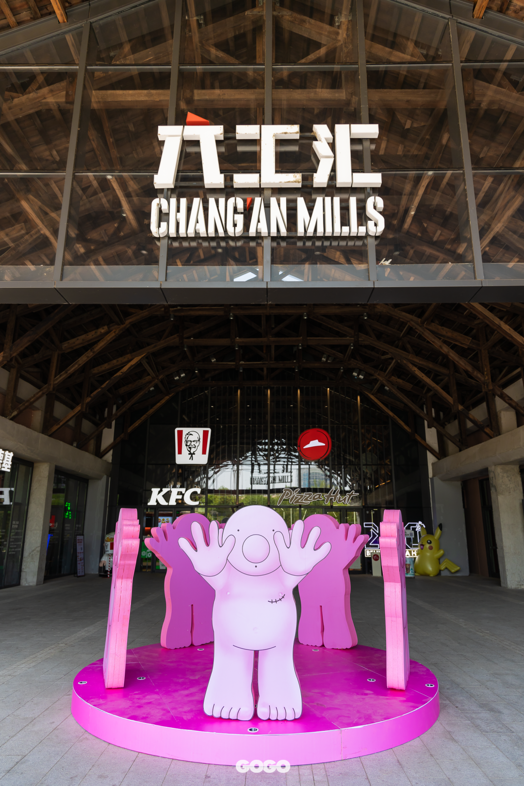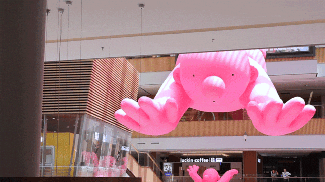 此外,商场外立面和不同的入口都有粉红先生的身影哦,同样萌翻你,快来一起寻找,亲历更多不可思“艺”吧~
