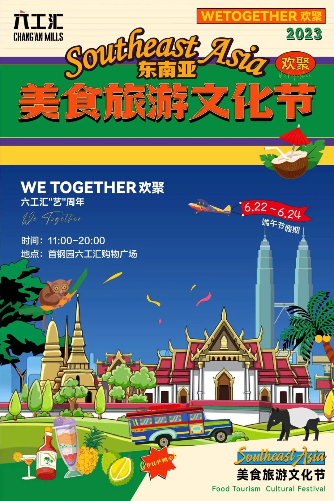 逛累了,不妨走进东南亚美食文化旅游节~东南亚多国官方旅游机构带着地道的特色美食齐聚六工汇。此外,夏日派对气氛组也已到场,摇滚、民谣、说唱、电子等音乐燃爆全场,从北京味儿到国际范儿,在六工汇下沉广场带来一场视听派对。当多元音乐遇上文化美食节,新奇的创意玩法,碰撞出不一样的化学效果!好吃好玩更好逛哦~