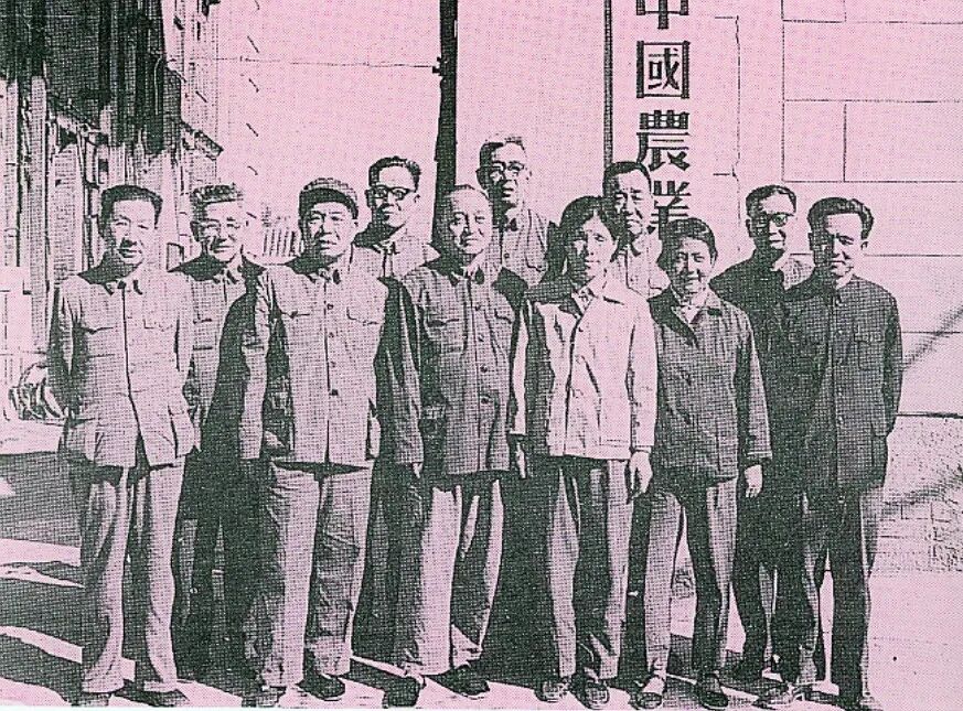 ▲ 中国农业银行第四次恢复成立时,第一届领导班子在总行大门前合影