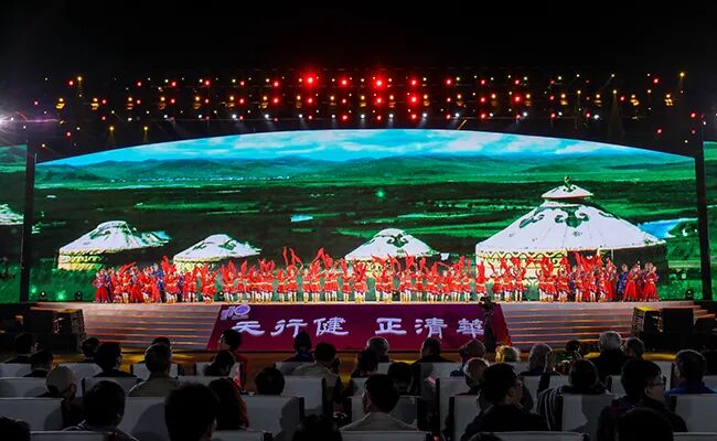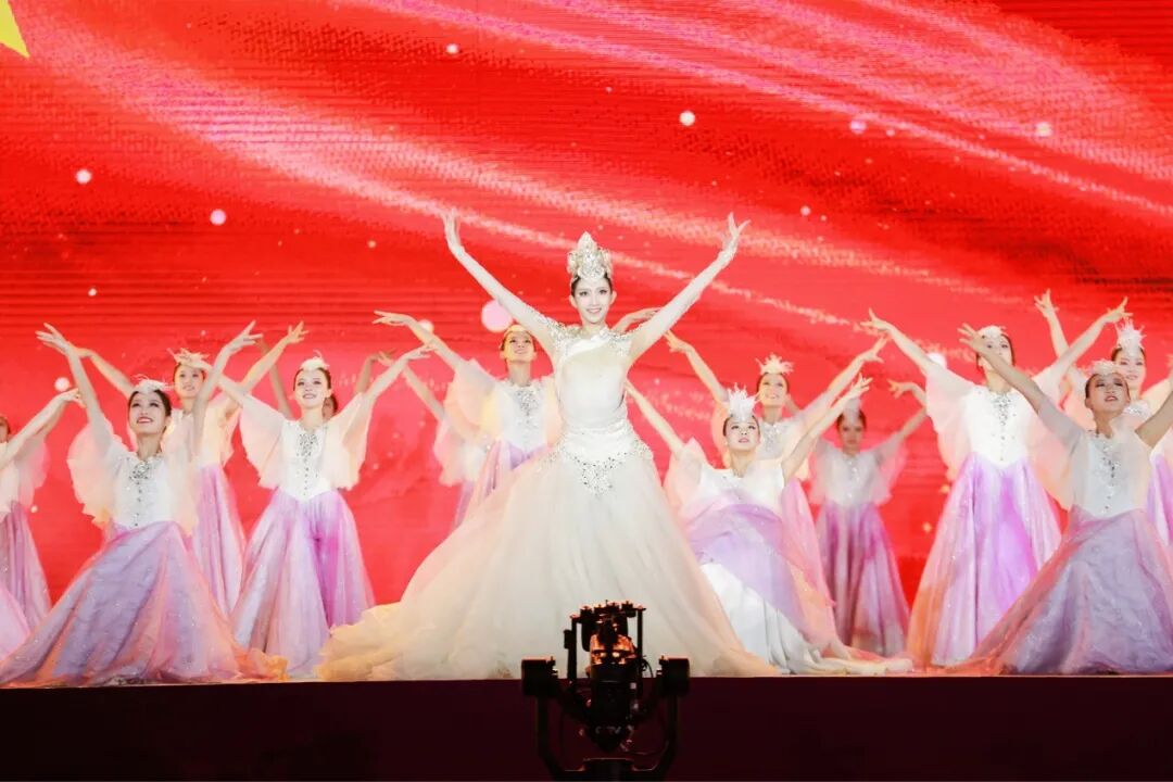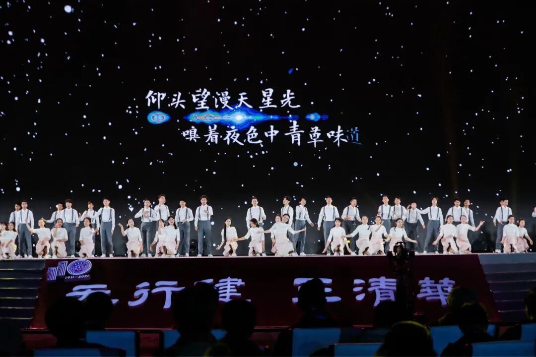 在晚会的最后,国旗和校旗交相辉映,全场齐唱《我和我的祖国》,用歌声祝福亲爱的祖国,礼赞伟大的时代。