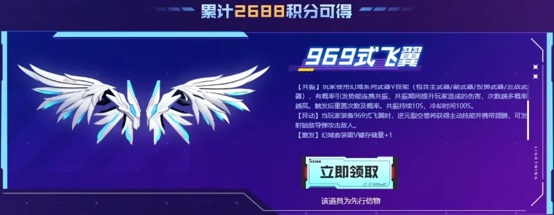 累计2688积分,可以领取969式飞翼。
