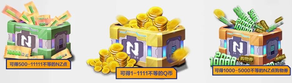 前30000名合成周年宝箱的玩家,可以获得Q币宝箱+NZ点宝箱+NZ点购物券宝箱的奖励;