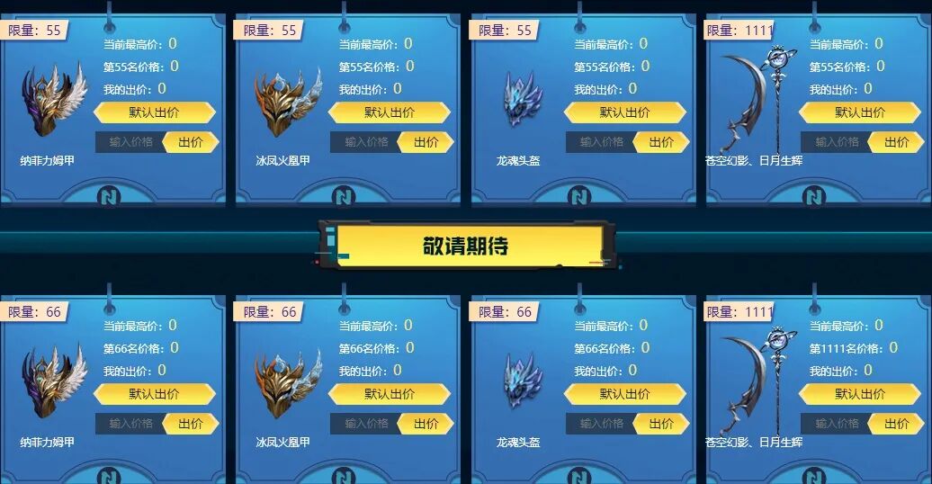 11周年拍卖行也将同期上线,在活动页面上,每日12点、19点会分别开启两场拍卖活动,拍卖持续2小时,各位玩家可以使用11周年金币出价,拍卖结束后将公布竞拍结果,竞拍成功后访问页面即可获取竞拍道具,次日0点将重置今日购买资格。每周拍卖道具都将更新,快来看看你喜欢的道具是否在其中吧!