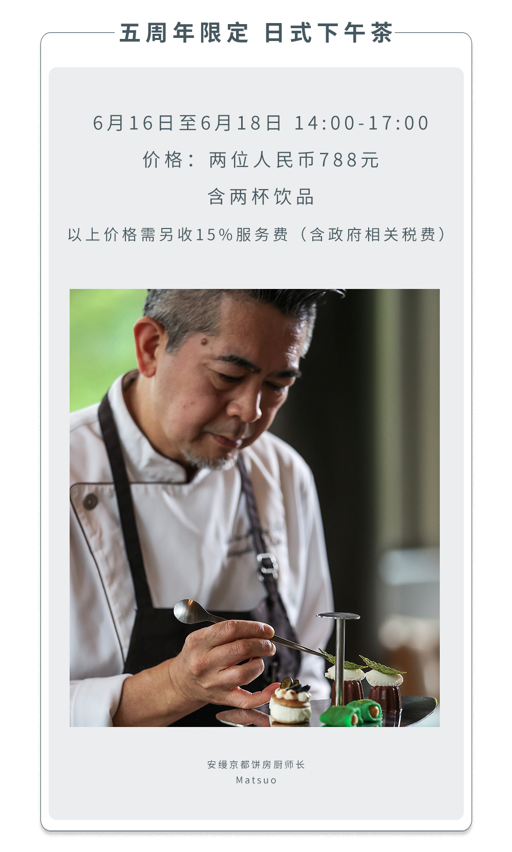在养云安缦五周年之际,来自安缦京都的饼房厨师长Matsuo将亲自带来精致的日式下午茶。
