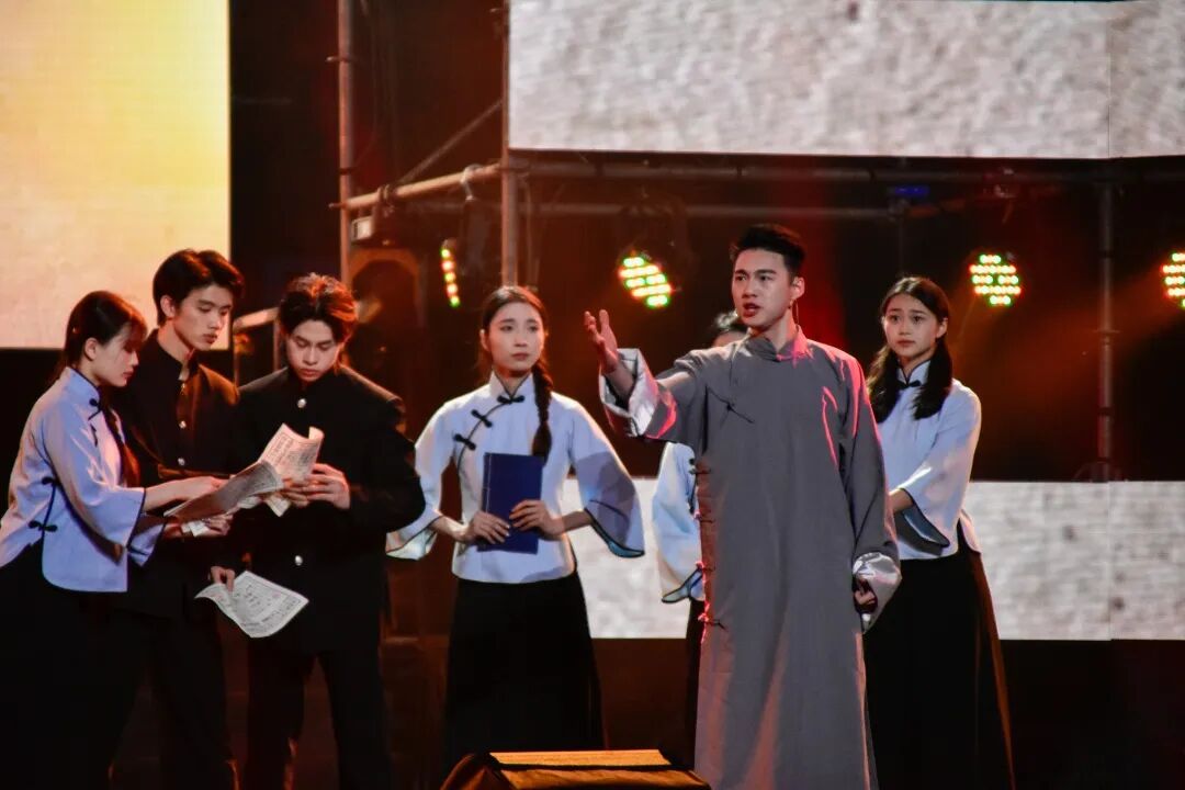 剧式节目“青春啊青春”元素丰富,情景朗诵、小合唱折射历史上的青春光芒,深大原创舞蹈《闯》舞出一代又一代深大人敢闯、敢创、敢干的创新风采;青春像甜甜的《乌梅子酱》,敢于《逆光》奔跑的追梦人,在《沧海一声笑》的豪情之中,回望《深大,梦开始的地方》;走出正青春的荔园,建设正青春的这座城,乘着《湾区风飞扬》,唱响《三自经》,颂《青春万岁》!