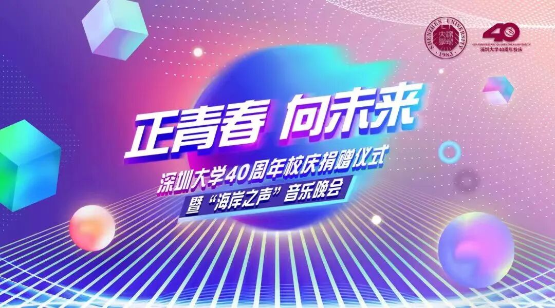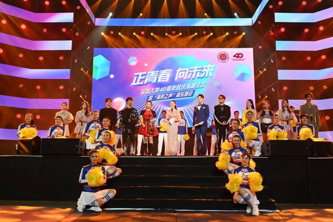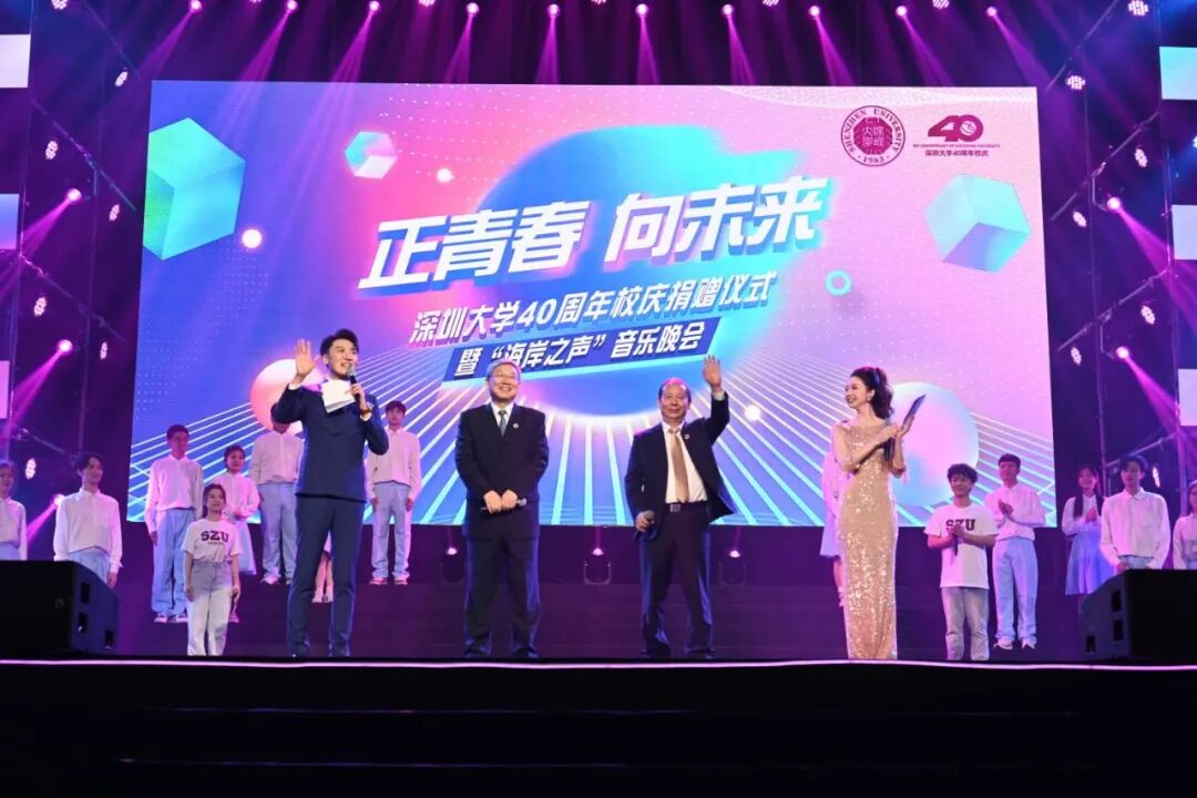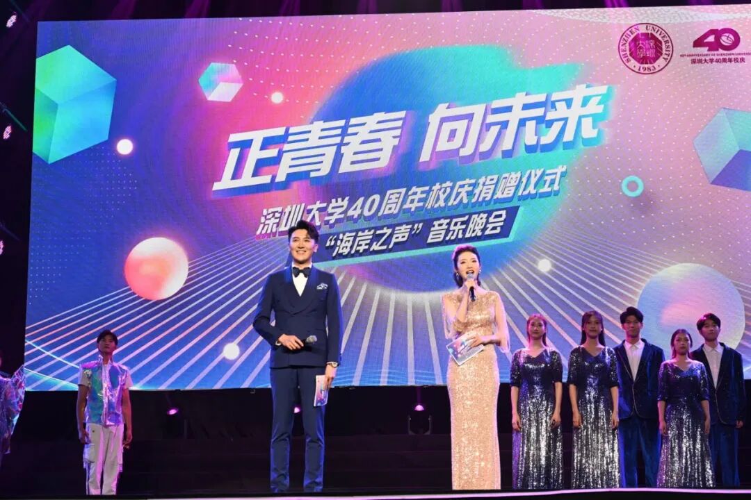 正青春,向未来。4月27日晚上,深圳大学40周年校庆捐赠仪式暨“海岸之声”音乐晚会在深圳大学丽湖校区至畅体育馆隆重举行。