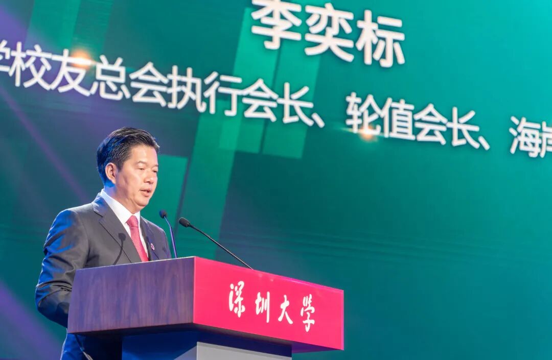 “参天之木,必有其根;怀山之水,必有其源。”李奕标在致辞中说,时光流转,回想当年在深圳大学的求学岁月,他深切感受到母校的关怀和培养。在大学里,学习的不仅是文化知识,更重要的是老师们言传身教的为人品质。深大“自立、自律、自强”和“脚踏实地”的精神理念,对他影响至今。李奕标说,作为深圳大学校友,他一直关注母校的发展,铭记母校的培育之恩,并以感恩之心回馈母校;作为校友企业,海岸集团将和深圳大学共同成立专项基金,一如既往支持母校的发展,助力深圳大学建设成为世界一流综合性大学;作为深圳大学校友总会执行会长,他将在未来工作中充分发挥校友会的平台作用,搭建校友之间交流合作的桥梁,为母校的建设和发展出一份力。“我们将通过校友平台,推动深大 30 多万校友与世界交流合作、增强校友凝聚力、提升校友影响力、培养校友创新力、发挥校友创造力,打造全国乃至国际校友会的标杆。”