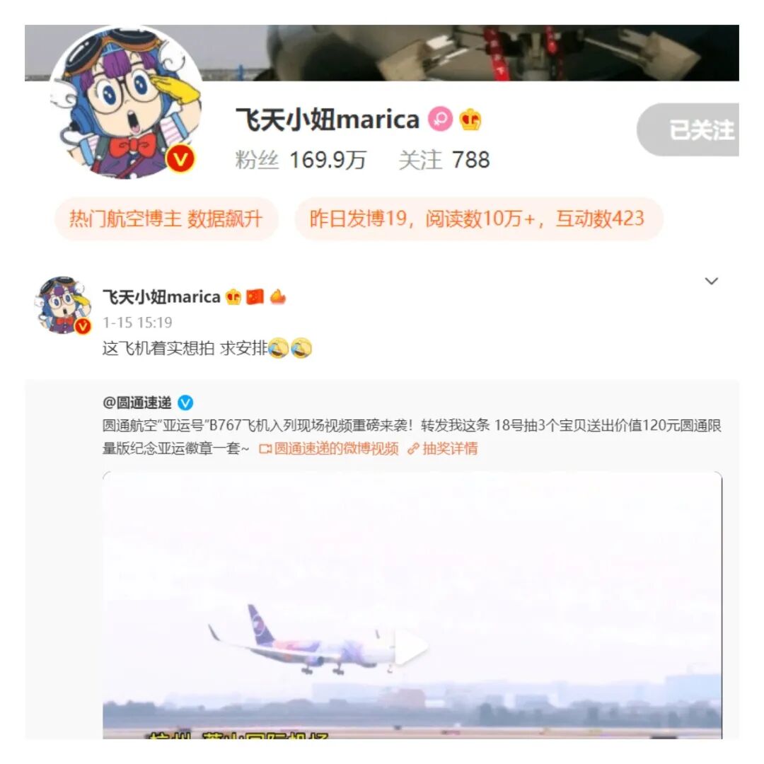 近日,圆通“亚运号”B767飞机正式入列圆通航空机队,这是圆通速递旗下圆通航空引进的首架宽体货机,也是圆通为杭州2022年第19届亚运会第一架投入赛事物流服务的货运飞机。