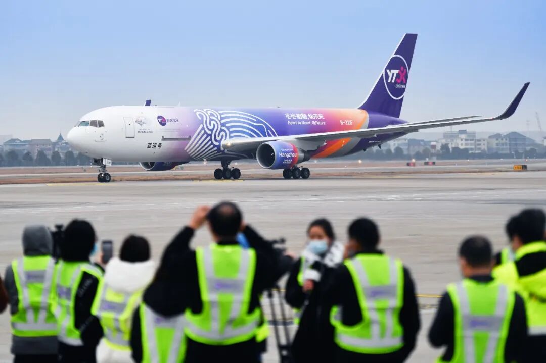 自今年初,圆通航空首架宽体全货机“亚运号”正式入列后,圆通航空持续加强国际运力建设,仅今年上半年就引进5架全货机,航空机型与运力结构得到进一步优化,将为参赛各国代表团提供安全、快捷的物资运输保障服务。