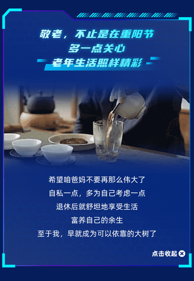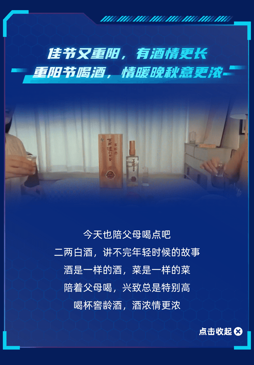 推荐:「点击切换后展开」父母的超前精神状态,然后多个平级「点击展开」展现父母在重阳节登高、赏菊、佩茱萸、践行敬老、喝菊花酒等习俗中的积极状态,传递 “愿亲人在旁,如意长安康” 的美好祝愿,同时宣传窖龄酒。