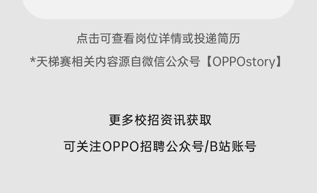 文章内容来源于公众号:OPPO招聘 点此可查看原文。若涉及版权问题或存在侵权情况,请及时与我们联系,我们将第一时间进行删除处理。