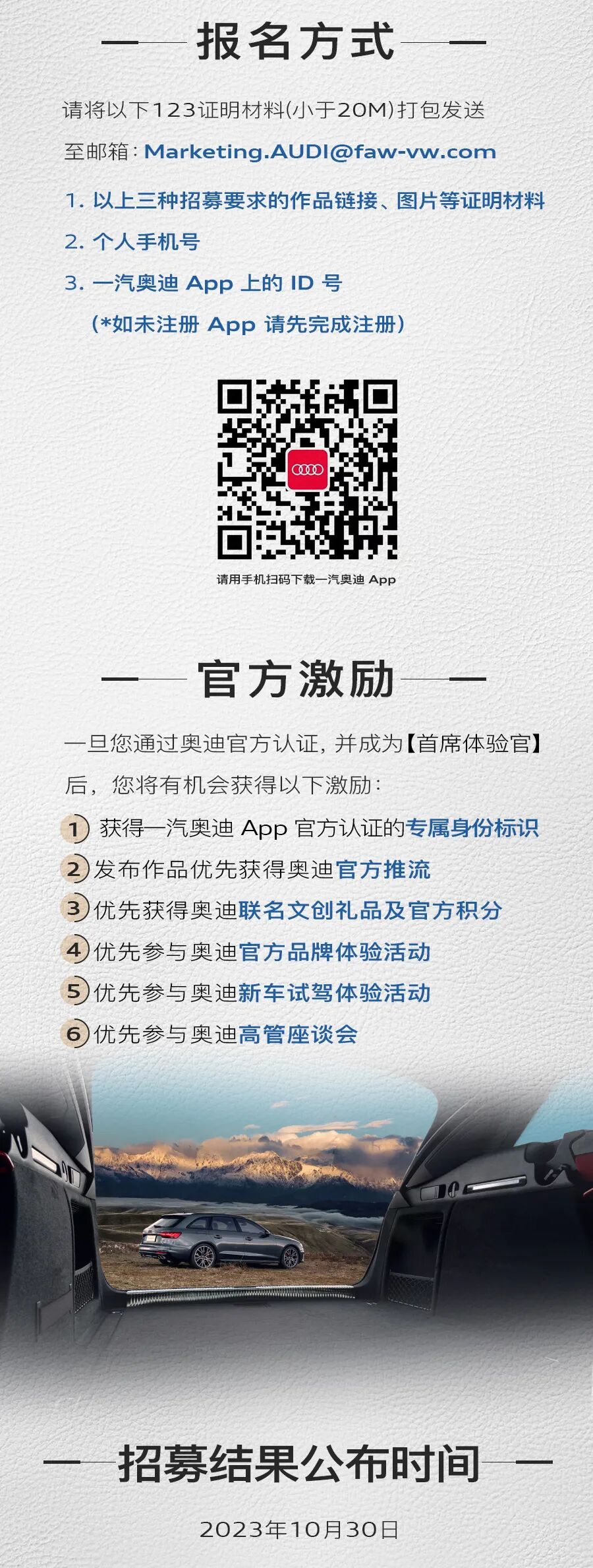 推荐:「点击展开」奥迪认证的首席体验官的招募信,吸引大家参与活动。