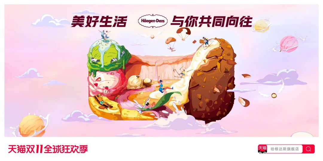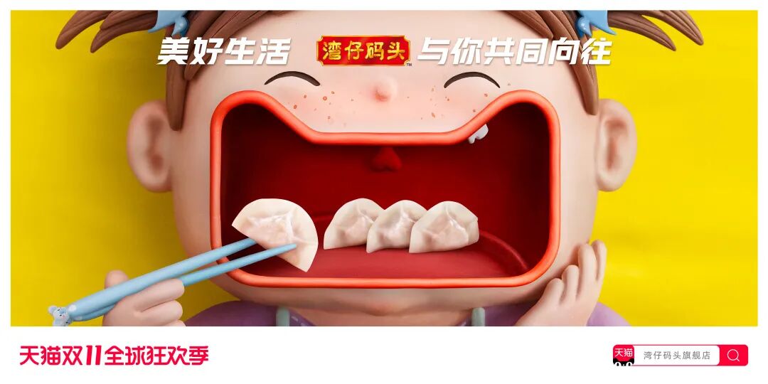 今年天猫的核心主题是「美好生活 共同向往」,“美好生活”一直以来都是全民追求的目标,“共同向往”表达了天猫想与各行业、消费者一起实现对美好生活的期待,阿广突然感觉自己责任大起来了怎么回事?话不多说,赶紧先一起来欣赏下今年的天猫X品牌联合海报吧。上面这些海报将品牌与「猫头」融合到了一起,既突出了天猫的「猫头」标志性元素,也很好地将自身品牌特点展现了出来。最让阿广眼前一亮的还是「湾仔码头」的海报,小朋友张得这么大的嘴,极具视觉吸引的效果,简单明了传达了饺子美味的讯息,看得阿广都心动了。不知道你看了那么多天猫X品牌联合猫头海报,有没有哪个海报让你印象深刻呢?